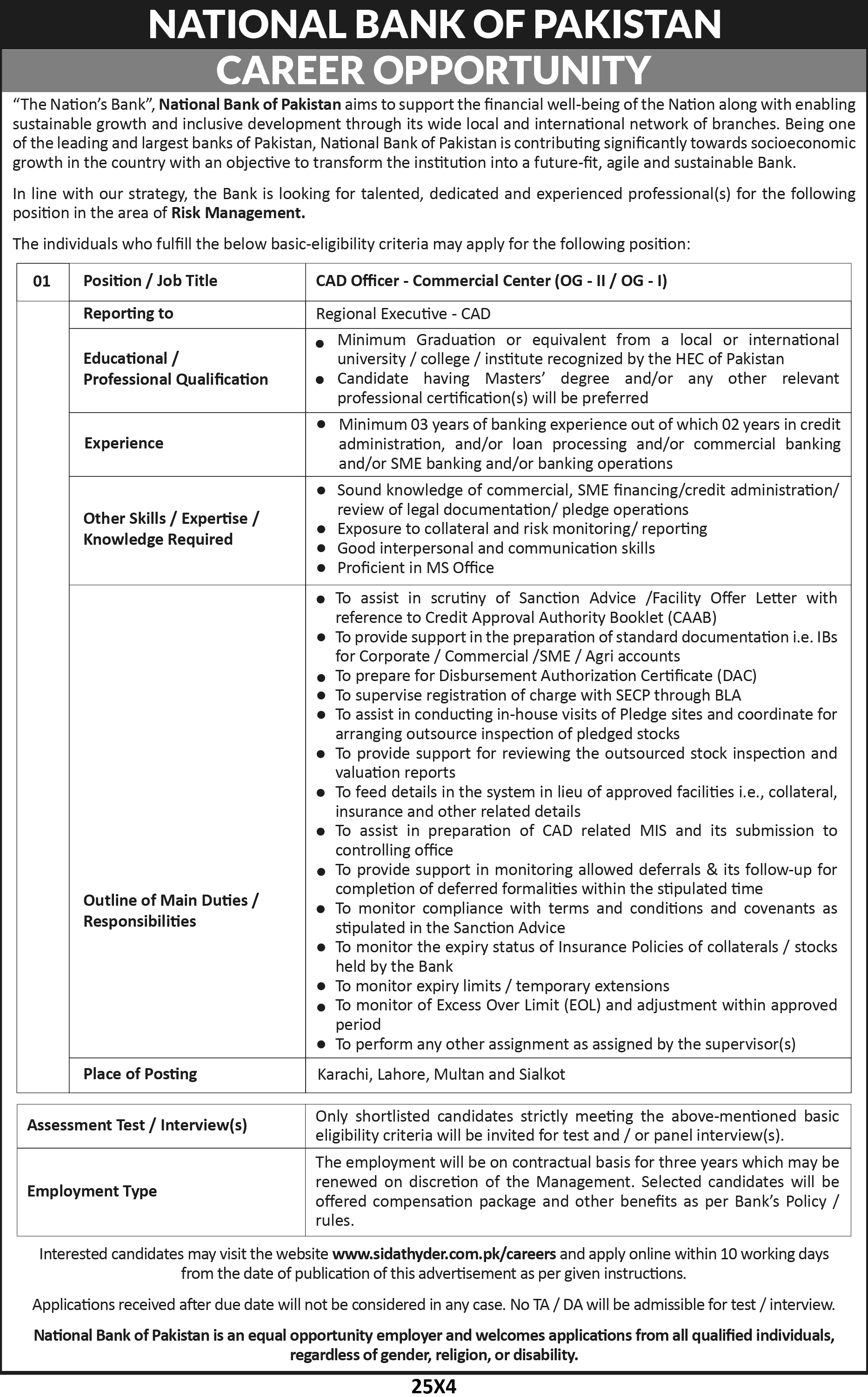 Interested candidates may share their CVs at ca.induction@sidathyder.com.pk
