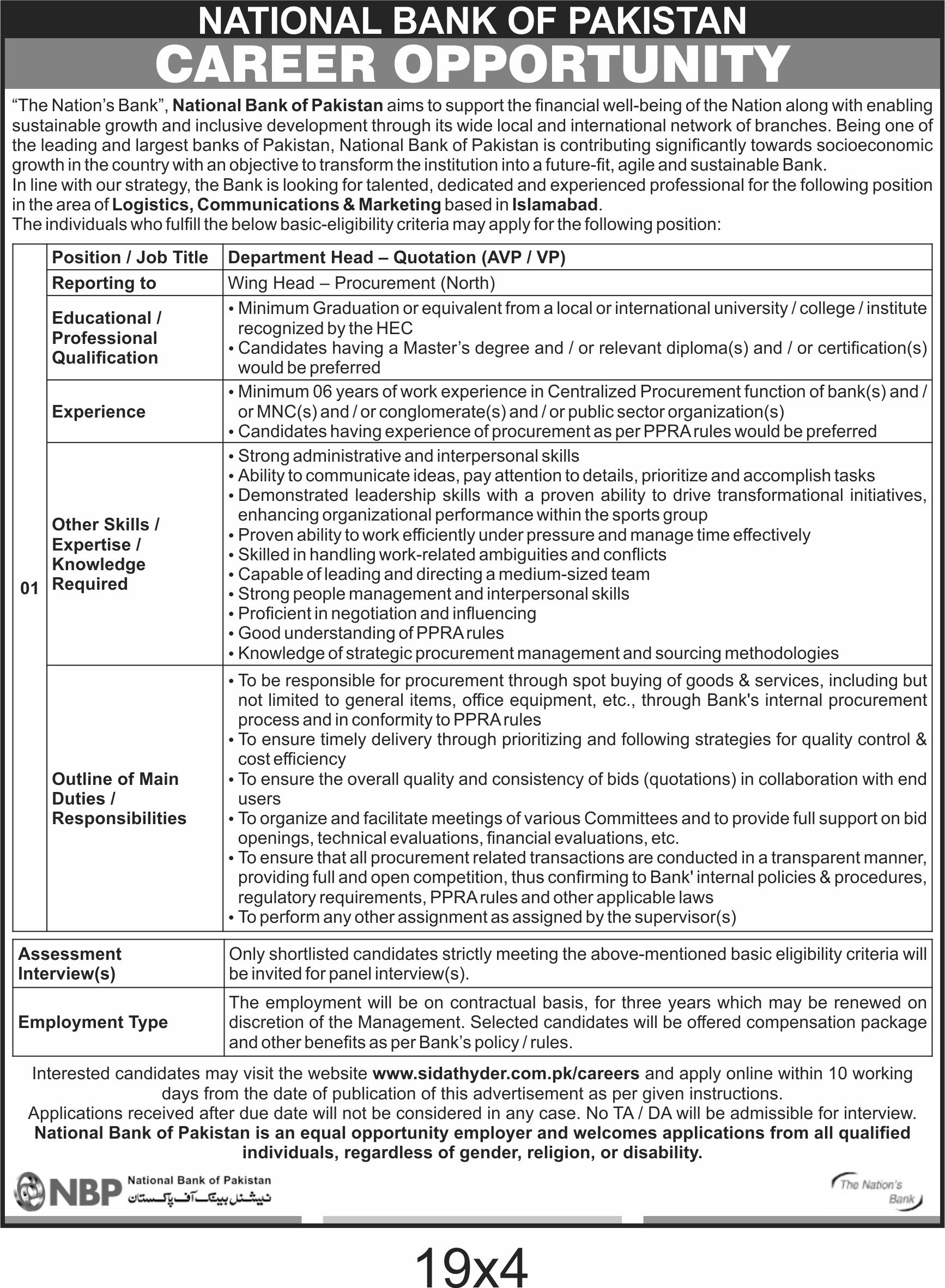 Interested candidates may share their CV at human.resource@sidathyder.com.pk.